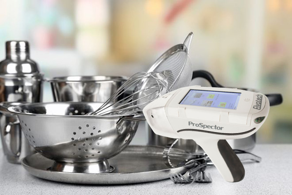在实际应用于不锈钢餐具的检测中,手持式X荧光光谱仪凭借其紧凑轻便的设计、高精度的元素分析能力以及出色的环境适应性,成为质量监控与安全检测中的得力工具。它不仅能够准确检测出镍、钼等主要合金成分,还能对多种微量元素进行同步分析,全程无需破坏样品,适合在生产流程、出厂检验以及市场监管等环节中使用。手持式X荧光光谱仪能通过元素成分的快速测定,间接辅助判断产品是否存在重金属潜在条件,为不锈钢餐具的安全性提供重要参考。